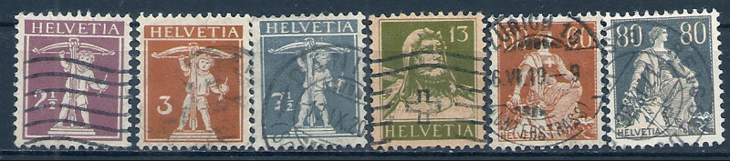 1917 r. Szwajcaria Mi 136 - 141 kasowane. Znaczki widoczne na skanie stan bardzo dobry. Polecam