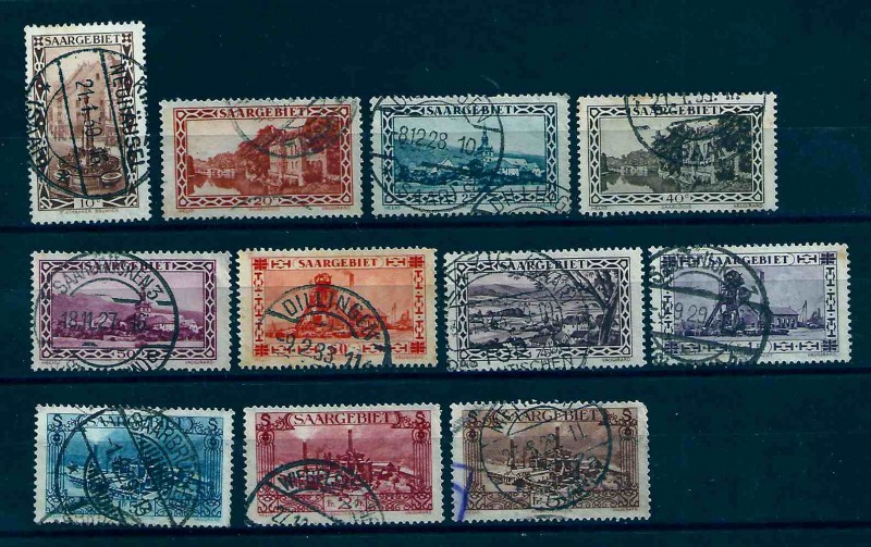 1927 r. SCOTT. 120 - 131 kas. SAARGEBIET. Znaczki kasowane w bardzo dobrym stanie , rzadkość na aukcjach internetowych. Polecam