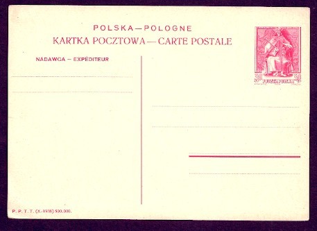 1938 r. Kartka Pocztowa Cp 84**. Kartka czysta stan bardzo dobry. Polecam