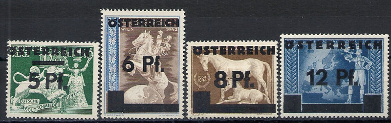 1945 r. Austria Mi 678 - 681**. Znaczki czyste z klejem bez podlepki stan bardzo dobry. Polecam
