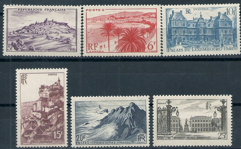 1946 r. Francja Mi 748 - 753**. Znaczki czyste z klejem bez podlepki stan bardzo dobry. Polecam