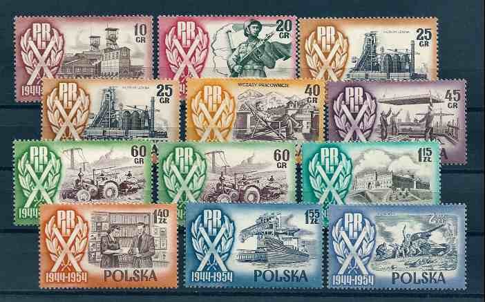 1954 r. Fi 747 - 756**. Znaczki czyste z klejem bez podlepki lub jej śladem, stan bardzo dobry. Polecam