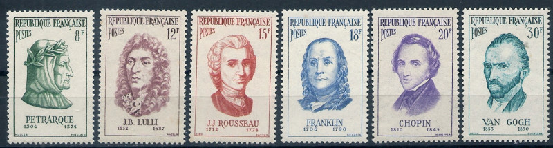 1956 r. Francja Mi 1103 - 1108**. Znaczki czyste z klejem bez podlepki stan bardzo dobry. Polecam