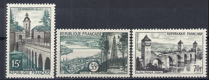 1957 r. Francja Mi 1140 - 1142**. Znaczki czyste z klejem bez podlepki stan bardzo dobry. Polecam