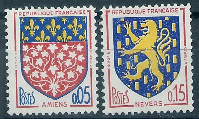 1962 r. Francja Mi 1399 - 1400**. Znaczki czyste z klejem bez podlepki stan bardzo dobry. Polecam