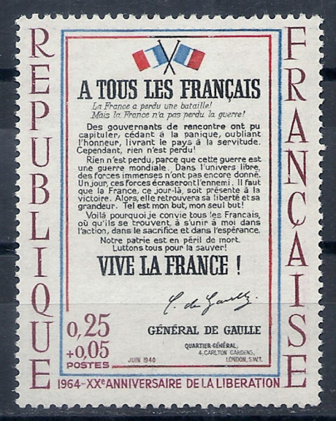 1964 r. Francja Mi 1477**. Znaczki czyste z klejem bez podlepki stan bardzo dobry. Polecam