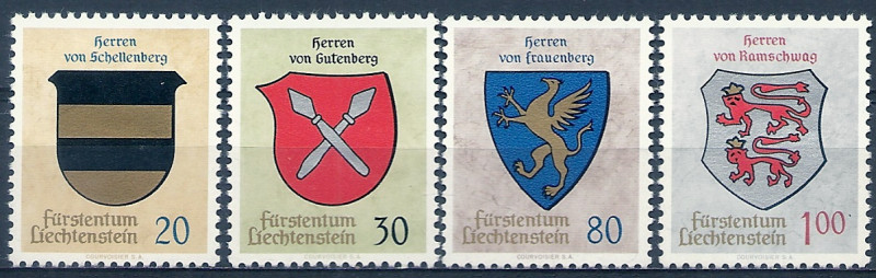 1965 r. Liechtenstein Mi 454 - 457**. Znaczki czyste z klejem bez podlepki stan bardzo dobry. Polecam