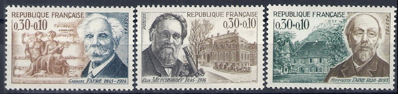 1966 r. Francja Mi 1546 - 1548**. Znaczki czyste z klejem bez podlepki stan bardzo dobry. Polecam