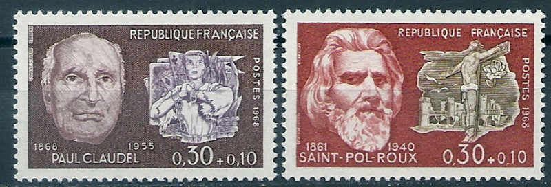 1968 r. Francja Mi 1622 - 1623**. Znaczki czyste z klejem bez podlepki stan bardzo dobry. Polecam