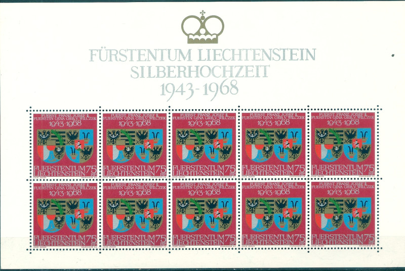 1968 r. Liechtenstein Ark Mi 500**. Znaczki czyste z klejem bez podlepki stan bardzo dobry. Polecam