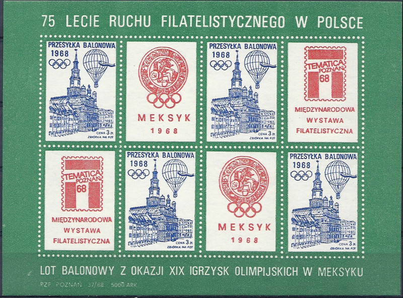 1968 r. Przesyłka balonowa. Ark z klejem bez podlepki stan bardzo dobry. Polecam