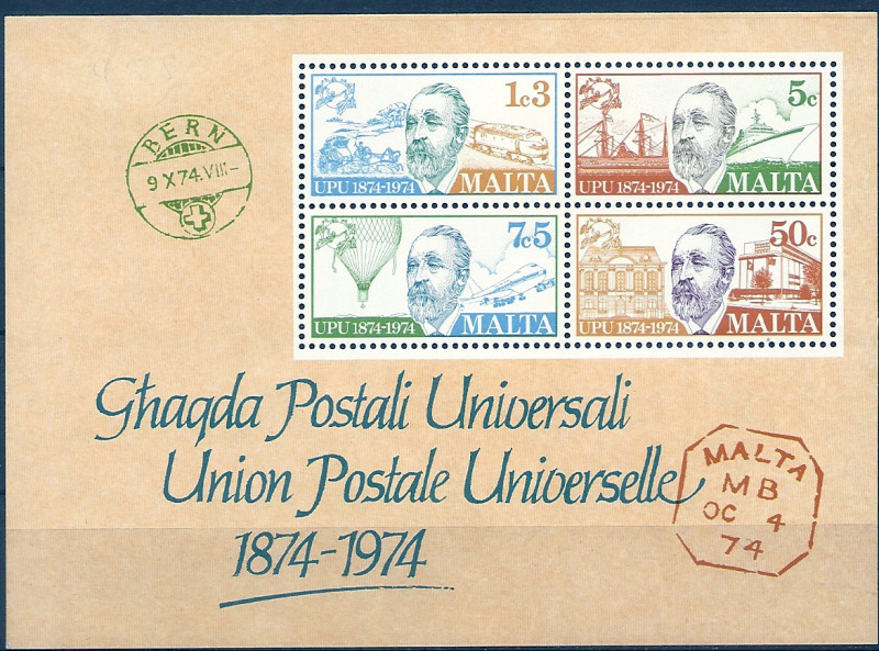 1974 r. Malta Blok 4**. Znaczki czyste z klejem bez podlepki stan bardzo dobry. Polecam