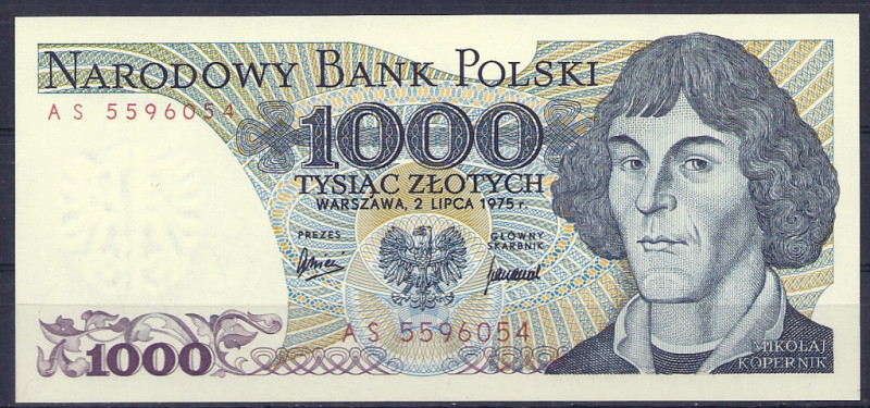 1975 r. 1000 zł.Kopernik. Banknot. UNC . Nr. 145bb. Seria AS. Polecam