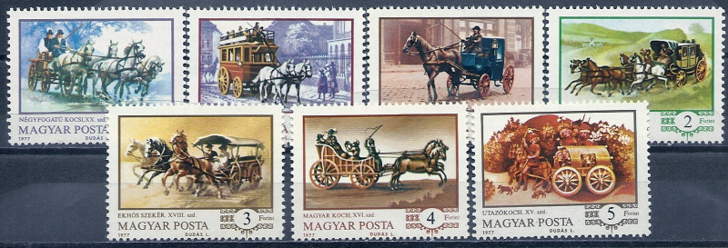 1977 r. Węgry Mi 3201 - 3207**. Znaczki czyste z klejem bez podlepki stan bardzo dobry. Polecam