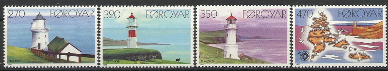 1985 r. Wyspy Owcze Mi 115 - 118** Latarnie Świata. Znaczki czyste z klejem. Polecam