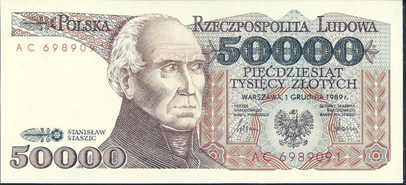 1989 r. 50 000 zł. Banknot UNC. Seria AC. Nr. 6989091. Nr. kat. 176. Polecam