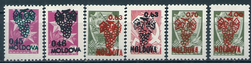 1992 Mołdawia Mi 31 - 36**. Znaczki czyste z klejem bez podlepki stan bardzo dobry. Polecam