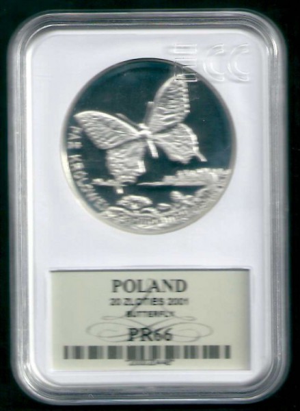 2001 r. 20 zł. Paz Królowej. Moneta w GRADINGU PR 66. Polecam