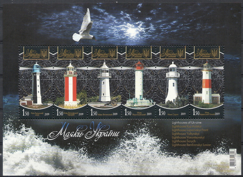 2009 r. Ukraina Ark 1091 - 1096**. Latarnie Świata. Znaczki czyste z klejem. Polecam