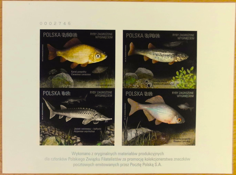 Na znaczkach przedstawiono gatunki ryb: Różankę pospolitą, Karasia pospolitego, Strzelbę błotną oraz Jesiotra bałtyckiego. Projekty znaczków zostały przygotowane na podstawie rysunków wykonanych przez P. Magdalenę Wolnicką-Maryniak, przedstawiających poszczególne gatunki ryb w ich "naturalnym otoczeniu".