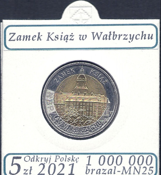2021 r. 5 zł. Zamek Książ. Moneta w stanie menniczym stan bardzo dobry. Polecam
