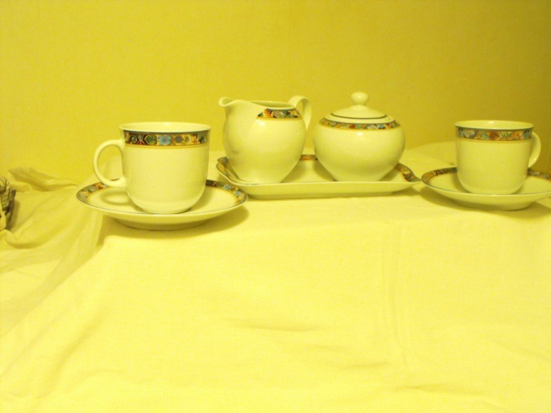 Zestaw porcelany 2 filizanki z podstawkami cukernica mlecznik + podstawek Sygnowane polecam
