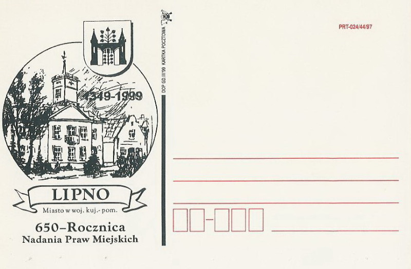 bez. Gdańsk 1999.III.02 : Lipno 650 lat praw miejskich