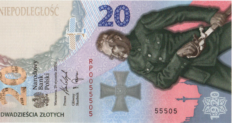 Pierwszy w historii Polski banknot kolekcjonerski w układzie pionowym wyemitowany dla upamiętnienia 100. rocznicy Bitwy Warszawskiej.