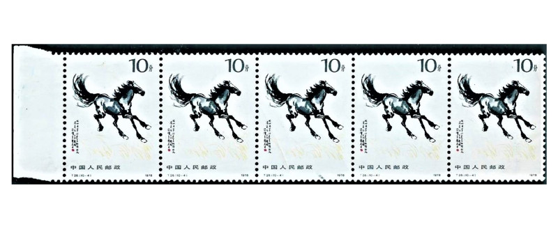 Pasek pięciu znaczków z Chin 1978-konie. Walor ze zdjęcia! Wyprzedaż kolekcji! Polecam!