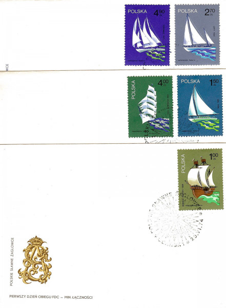 FDC 1974 S-503 Fi 2170-2174 Sławne polskie żaglowce