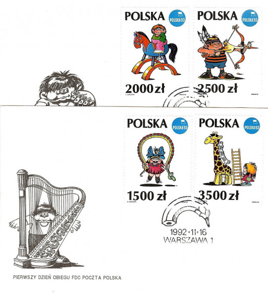 FDC 1992 S-933 Fi 3261-3264 Swiat ilustracji E.Lutczyna