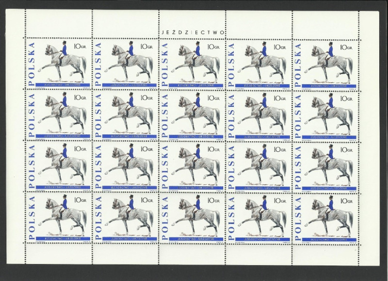 Arkusze 20-znaczkowe, kompletna seria Fi 1592-1599 serii Jeździectwo.