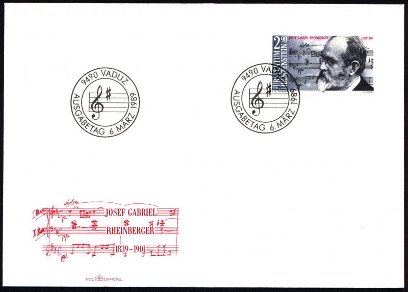 Liechtenstein FDC 1989 Mi 963 Rheinberger, Josef Gabriel