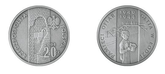 Moneta kolekcjonerska 20 złotych Pamięci Ofiar Getta w Łodzi