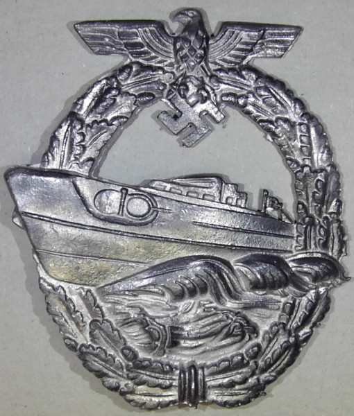 Oryginalna odznaka Kriegsmarine E-Boat firmy Schwerin, 2. wzór, wykonana z cynku.