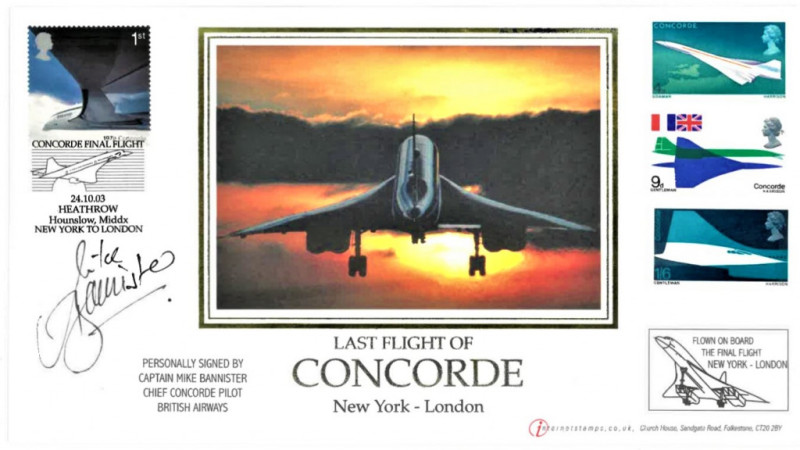 Ostatni lot Concorda 24.10.2003 z Nowego Jorku do Londynu-Heathrow. Na kopercie podpisał się