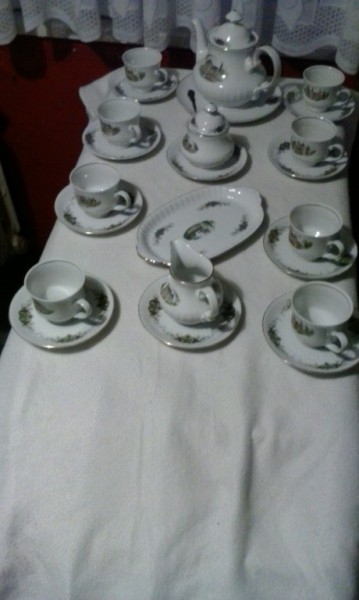 Zestaw dla 8 osub 24 elemety Porcelany Pierszego gatunku z motywem zamkow i herbow sygnowane