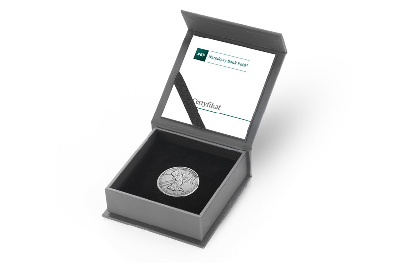 W zestawie: srebrna moneta w kapsule ochronnej, pudełko kaszerowane, folder emisyjny