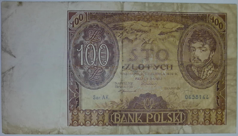 100 złotych 9 listopada 1934. Seria: AK. 0658144