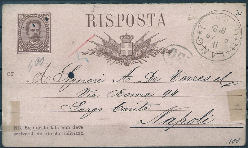 1887 r. Włochy Karta Pocztowa. Kartawidoczna skanie stan bardzodobry. Polecam