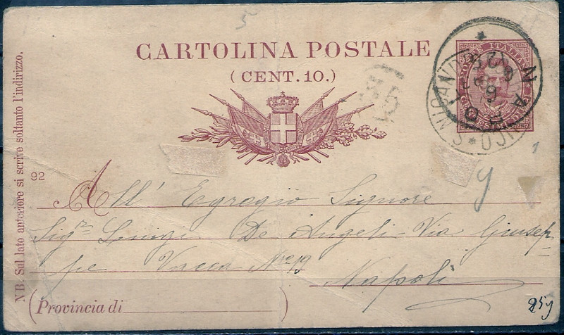 1892 r. Włochy Karta Pocztowa. Kartawidoczna skanie stan bardzodobry. Polecam