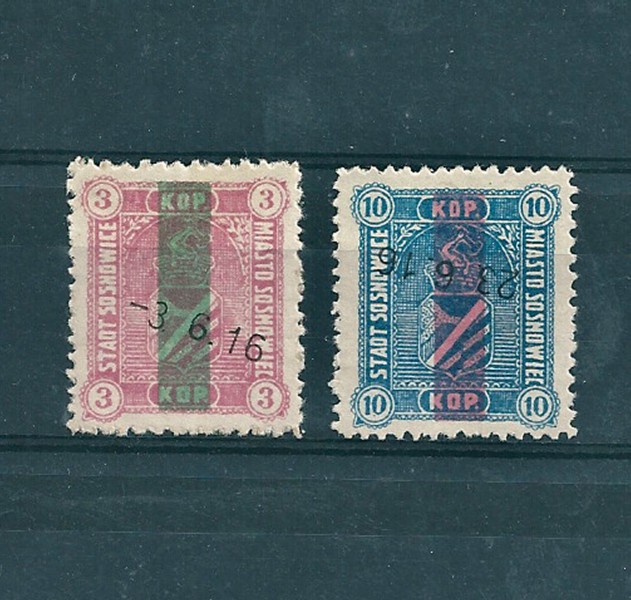 1916 r. Fi 3 i 4 kasowane. Herb miasta. Sosnowiec. Stan bardzo dobry. Polecam