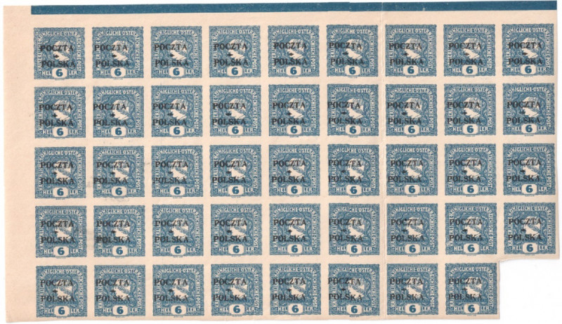 1919 Wydanie Krakowskie 94 szt. Fi 52 forma IIC poz 1-9, 11-19, 21-29, 31-39, 41-48, 51-100 W sumie 2 wielobloki (połówka i prawie połówka). Prawdziwe 100%. Wszystkie czyste bez podlepki ani jej śladu, stan bardzo dobry. 6h.