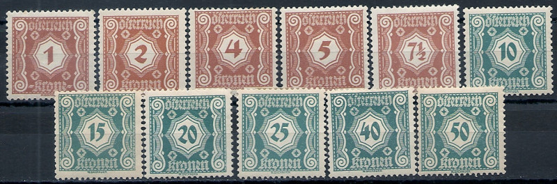 1922 r. Austria J 103 - 113*. Znaczki czyste z klejem z podlepką stan bardzo dobry. Polecam
