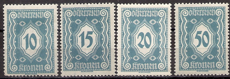 1922 r. Austria J 114 - 117*. Znaczki czyste z klejem z podlepką stan bardzo dobry. Polecam