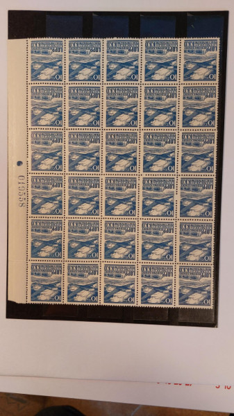 1935 wydanie na cele budowy obiektów lotniczych LOPP - Warszawa - samolot nad budynkami, Budowa Szkoły Lotniczej Pracowników KKO - Komunalna Kasa Oszczędności, 30-blok nalepki za 10 gr.