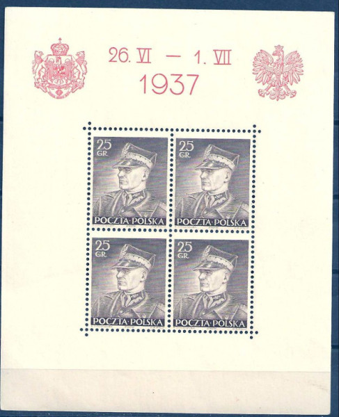 1937 r. Blok nr. 2 **. Sprzedaję blok jako czwórka z bloku. Znaczki czyste z klejem bez podlepki stan bardzo dobry, na bloku jest widoczna mała plamka ubytku kleju. Polecam