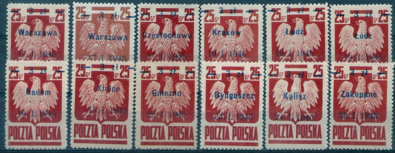 1945 r. Fi 348a - 357**. Znaczki czyste z klejem bez podlepki Fi 348b z gwar. Fi 351 II z gwar. stan bardzo dobry. Polecam