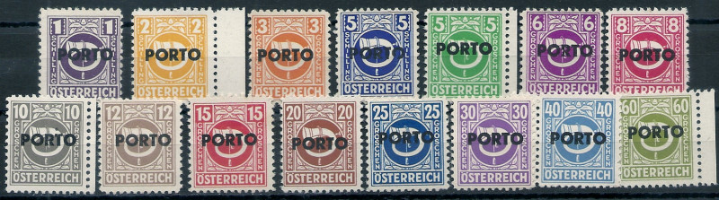 1946 r. Austria Mi 189 - 203**. Znaczki czyste z klejem bez podlepki stan bardzo dobry. Polecam