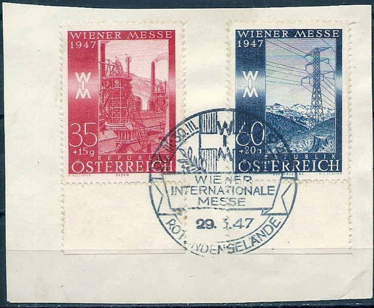 1947 r. Austria Mi 733 - 734. Znaczki widoczne na skanie. Polecam